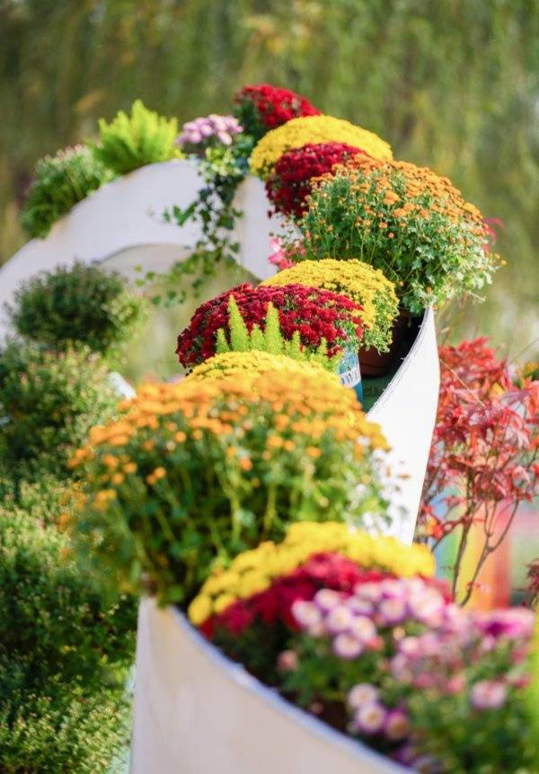 据先容,花木温室共展出邦外里独本菊(一盆一株、一株一花)400余个种类。还展出了制型各异的盆景菊、悬崖菊、切花菊,以及由园艺大咖孙艳霞、非非等谨慎创作的10件菊花插花艺术作品。